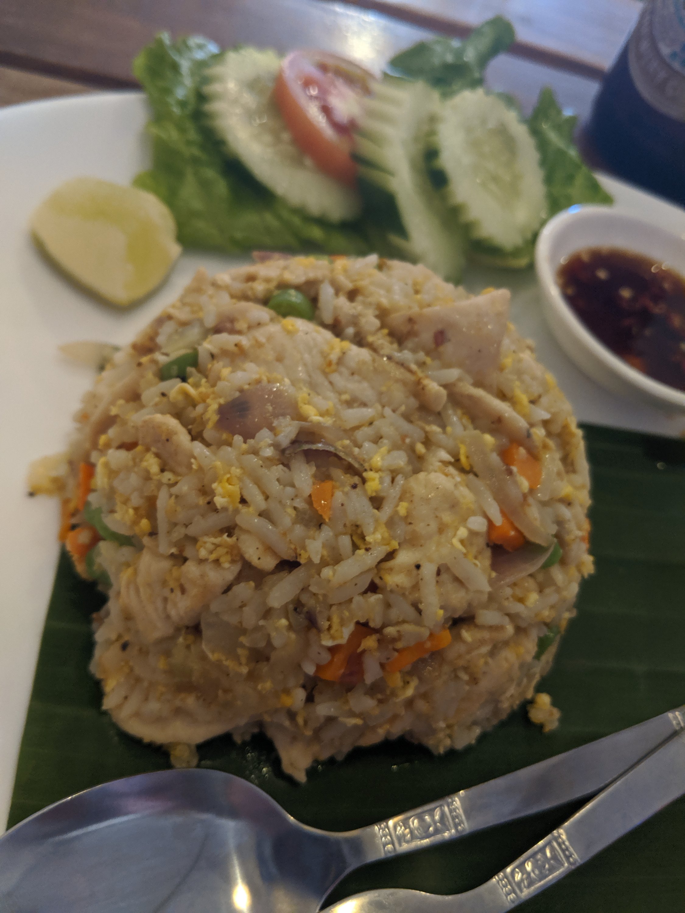 - We spent 83,000 kip on a main, half a main (just meat, no side dish included) and 2 sodas.