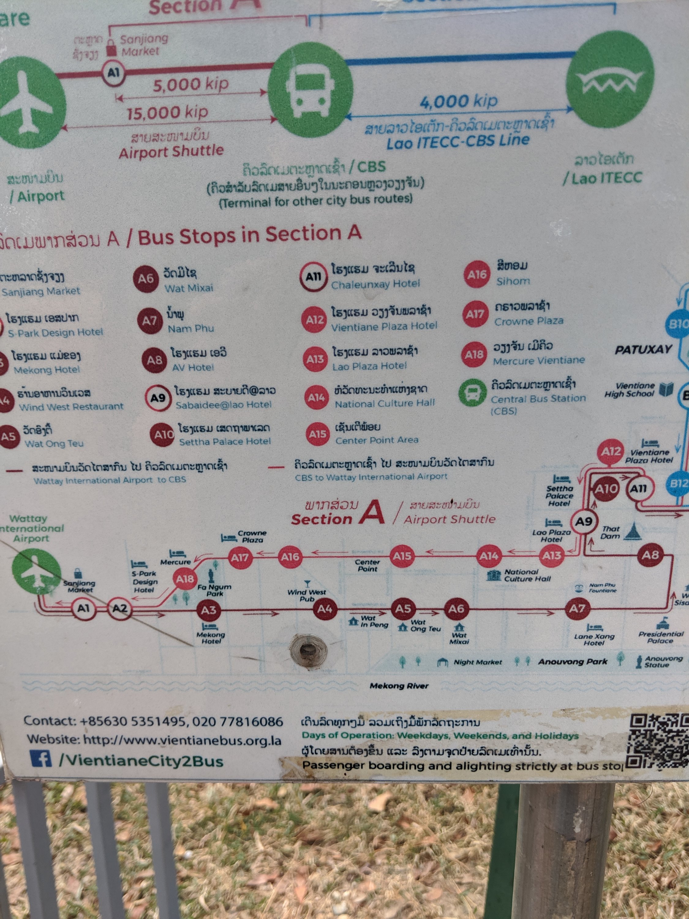 - There is a public bus that also goes to and from the Airport – 15,000 Kip per person.